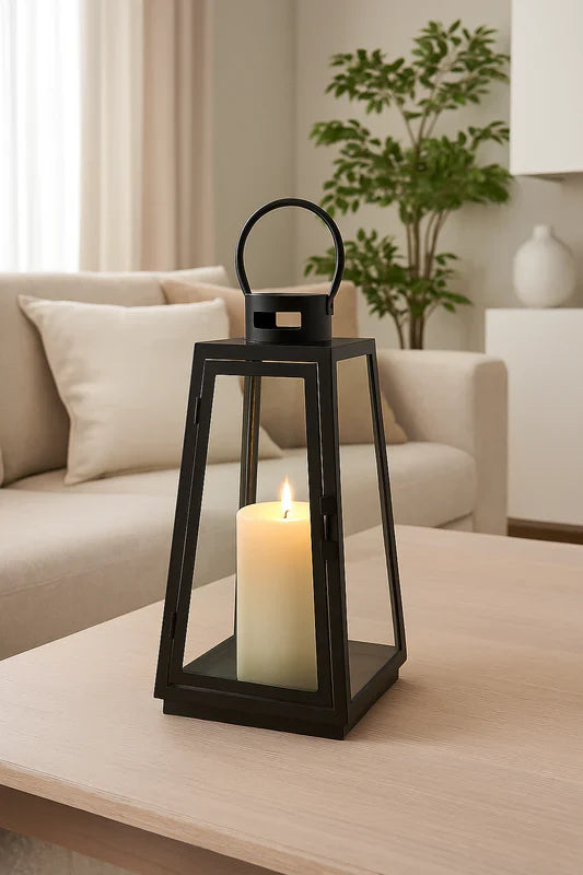 Svart metalllykta med glas – stilren ljuslykta för blockljus