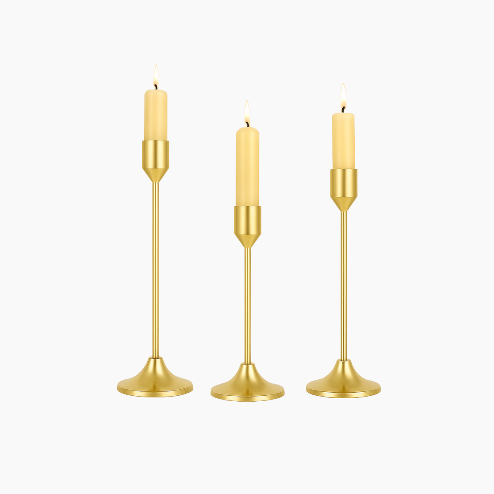SOLVAR-ljusstakarna förvandlar varje dukning till en sofistikerad upplevelse. Med sin smala siluett, gedigna metallkonstruktion och olika höjder skapar de ett harmoniskt spel av nivåer och ljus. Perfekta för bröllop, festdukningar eller som stilren inredningsdetalj året om – välj mellan klassiskt svart eller elegant guld.